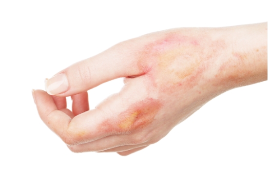 やけどは医学専門用語では「熱傷」とよばれ、熱による皮膚や粘膜の外傷のことです。高い温度の物質が皮膚に一定時間以上接するとやけどとなります。もちろん爆発や炎などによってもやけどになりますが、低温熱傷ではそれほど高い温度ではないものでも持続的に加熱されることで、やけどになることがあります。