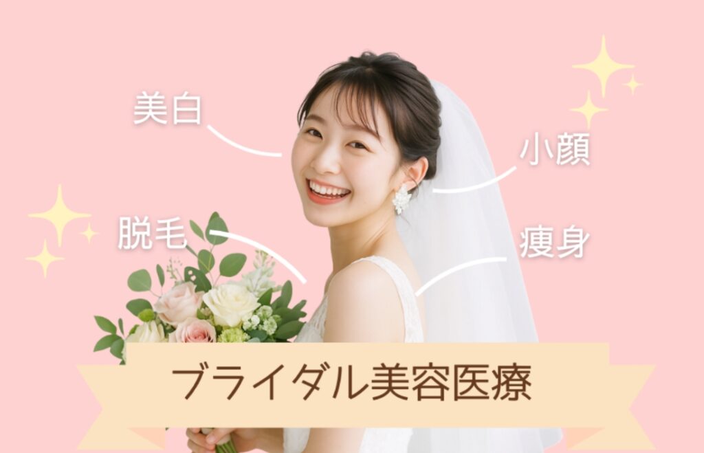 お肌のコンディションを整えるフェイシャルケアから、透明感・小顔・美白など、目的やスケジュールに合わせた美容医療を提案し、ブライダルエステでは叶えられないワンランク上の美容医療を提供し、式当日をベストな状態で迎えられるようサポートいたします。