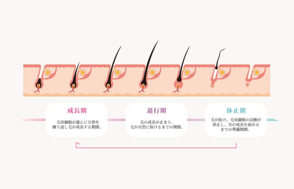 休止期の体毛にはレーザーが効きませんので、毛周期に合わせて成長期に入ったころを見計らって再度レーザーを照射する必要があります。