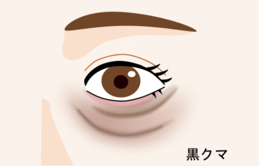 黒クマは目の下に段差ができて影のようになっている状態で、主に加齢による目の周りの筋肉の弱まりや、眼窩脂肪の突出や皮膚のたるみなどの影が原因です。